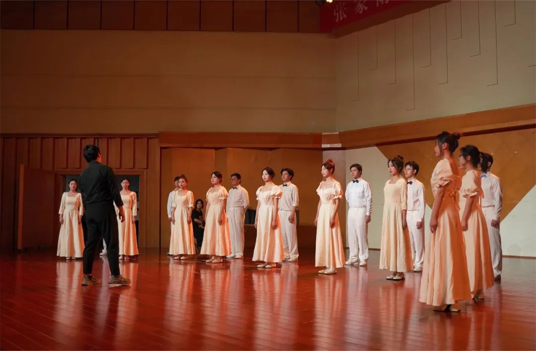 声乐模块的同学用美妙的音乐诠释着演教学子坚持理想、追求卓越、勇开风气、兼容并包的精神风貌,通过歌唱,表达他们对专业的热爱和情感。