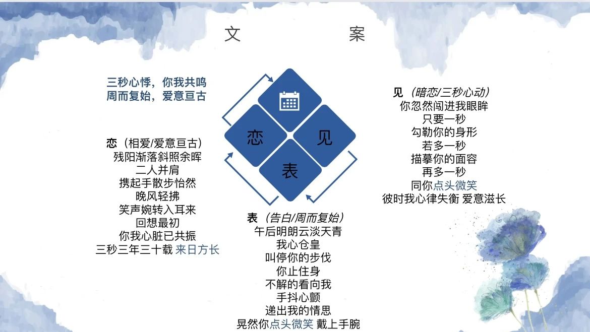 创意文案考核内容:为某款产品策划一套视频广告创意方案,目的是考察学生对广告脚本策划的创新能力和文字的把控能力。评分标准围绕着创意、文字、方案架构、逻辑表达、设计审美、主题内容、平面广告设计(额外加分项),共七个方面。