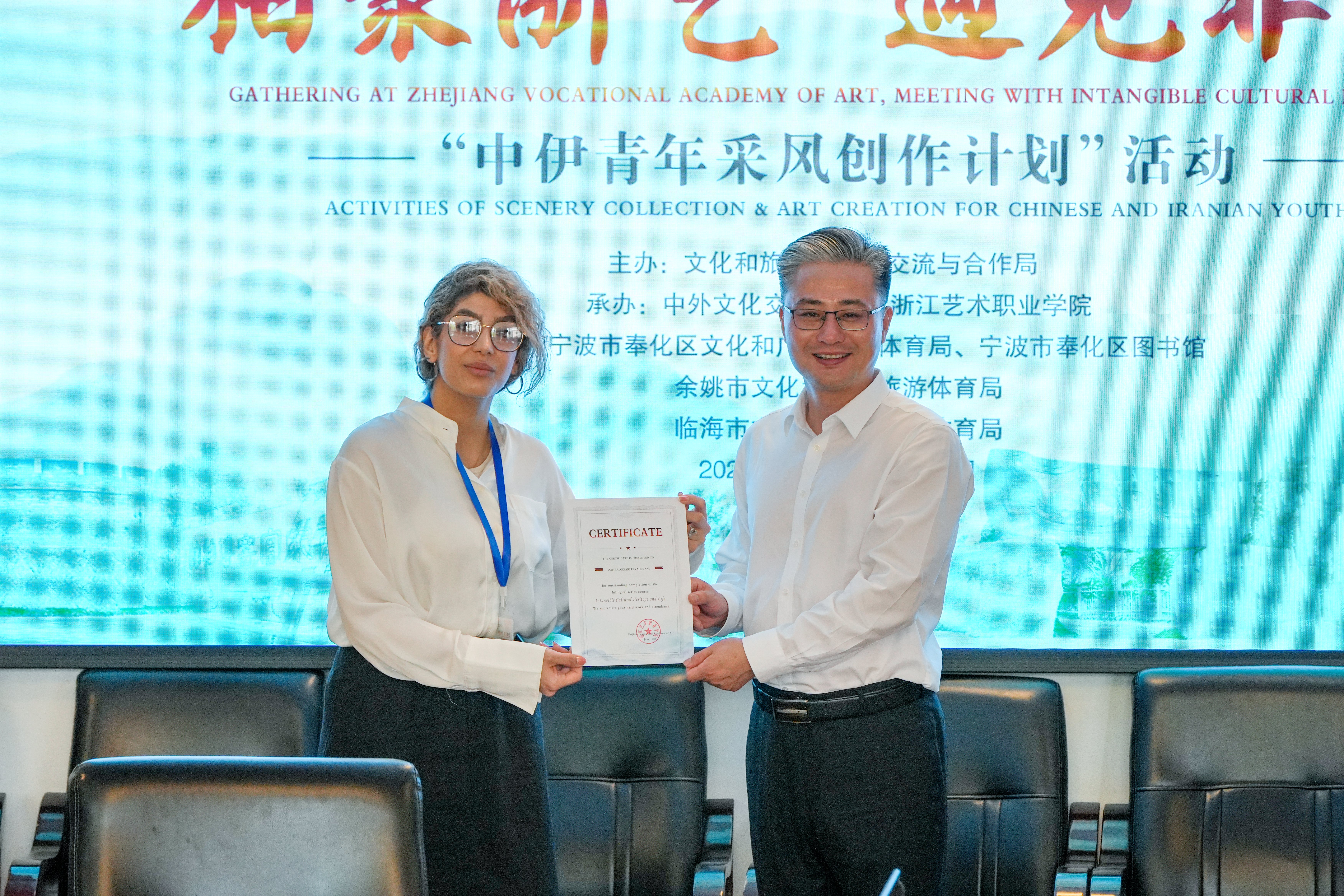 结业仪式当天,青年学者畅谈了学习体会。大家表示,这是一次难得的了解中国,了解浙江的机会,近距离走走看看,才更明白,中国的高速发展和进步其实是历史沉淀的结果。感谢浙艺,感谢老师们,安排了丰富的、富有特色的非遗课程,大家的同心协力、精准计划、热情友善,让他们印象深刻。他们会将中国、浙江和浙艺介绍给伊朗人,为推动中伊文化交流做出贡献。