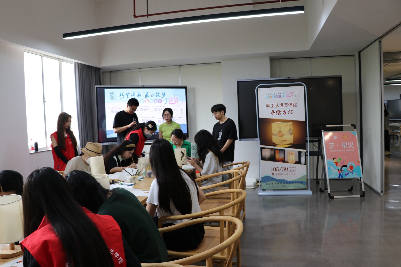 5月30日,手工艺学院在立业园实训室三楼开展手工艺活态体验——手绘台灯活动。全校三十多位师生参与,现场座无虚席,师生热情高涨。