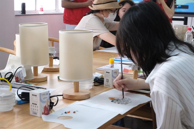 以“灯罩”作为介质,让创意在指尖绽放,师生们用一双双巧手创造绘制出属于自己的台灯。