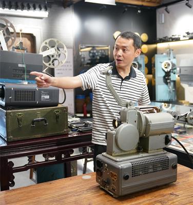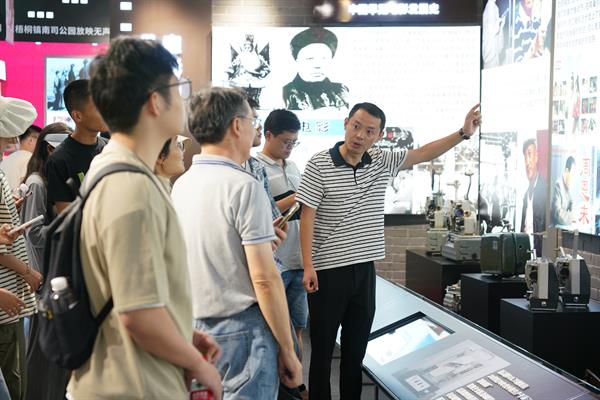 在光影故事馆,馆长朱强带领大家参观了他从全国各地收集来的近百台电影放映机、胶片、海报、电影票等老物件,其中便有新中国第一代胶片放映机——长江老五四16毫米电影放映机等。在参观的过程中,朱强为大家讲解了中国电影发展史、浙江电影在桐乡的历史等,让团队成员清晰地了解了中国电影从无声到有声,从胶片到数字化的发展历程。