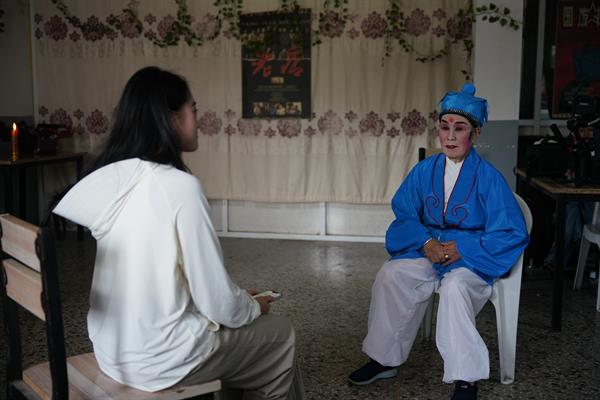 穿上色彩鲜艳、图案简单朴素的戏服,戴上亮眼的圆帽,画上浓浓的妆容与鬓角……在马鸣庙古戏台的后台,花鼓戏表演者正等待着出场,准备为我们呈现一出“退婚”的精彩表演。花鼓戏的表演风格活泼生动,贴近人民群众实际生活,富有浓郁的生活气息。团队成员对屈子仙、屠利华两位演员分别进行了采访。屈子仙从小学习花鼓戏,如今已有81岁高龄,她就桐乡花鼓戏的起源、传承、发展以及此次表演的剧目做了详细的介绍,并展示了一段经典唱段,让成员们进一步感受到了花鼓戏的独特魅力。