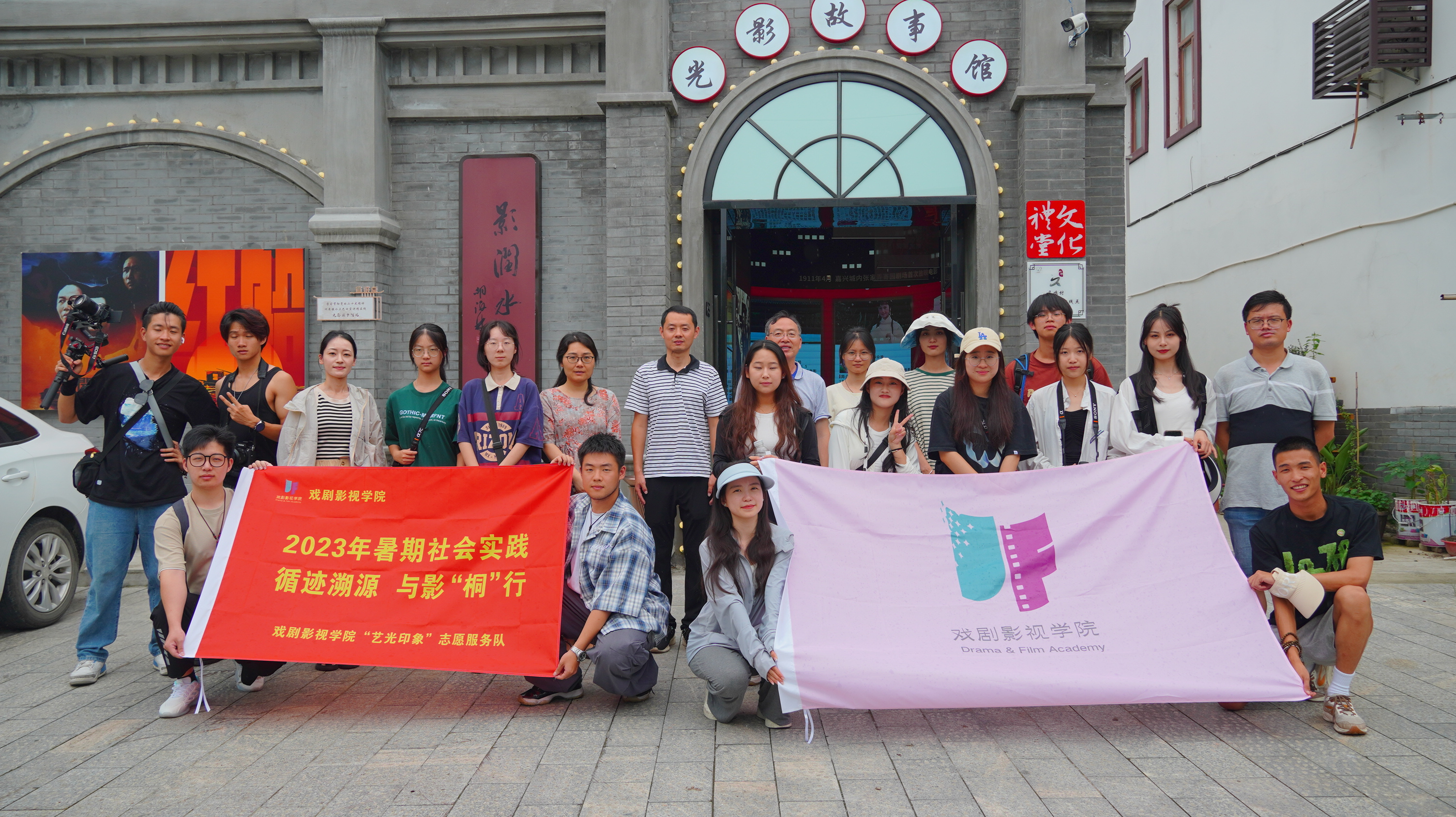 7月8日,戏剧影视学院“艺光印象”志愿服务队成员来到“中国传统村落”“诗画浙江——浙江最美乡村”“浙江省历史文化重点保护村落”——嘉兴桐乡市洲泉镇马鸣村,开展“循迹溯源,与影‘桐’行”暑期社会实践活动。在马鸣村师生们聆听四代电影放映人的“光影故事”,体悟放映人对红色光影不变的初心;走进戏台观看花鼓戏,感受“活态”非遗的魅力;放映露天电影,丰富群众文化生活。