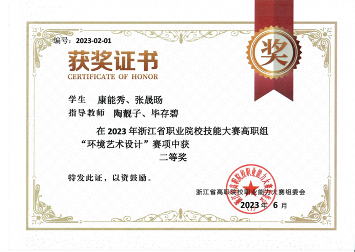 喜报|环境艺术设计专业学生在2023年浙江省职业院校技能大赛(高职组)“环境艺术设计” 赛项中喜获佳绩