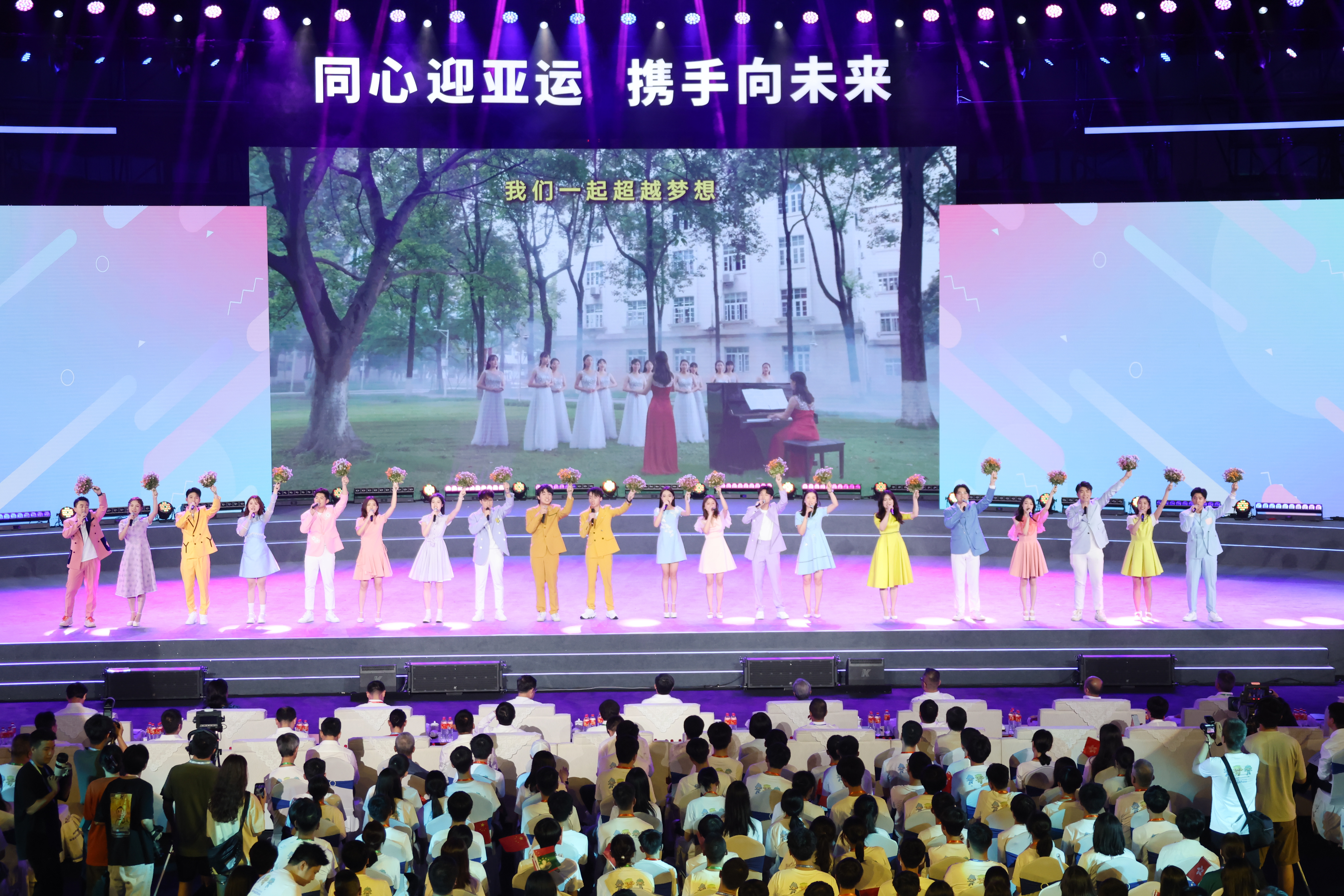 启动仪式现场节目有“相见浙江”“拥抱亚运”“奔向未来”三个篇章,既有歌舞《云端的梦想》、音乐说唱《带你看浙江》、情景舞蹈《良渚之光》、霹雳舞《为亚运齐舞》,还有乐队表演《骄傲的少年》、音诗舞《少年中国》等。奥运冠军杨倩、王懿律,世界冠军傅园慧来到现场与观众互动,为亚运加油。我校音乐学院、演艺与教育学院94名学生参与歌曲串烧《青春潮》、亚运活力操《等你来》、歌舞《奔向未来》三个节目。参演学生在歌曲串烧《青春潮》中身着统一服装、与港澳青年一起伴着音乐轻快起舞,边唱边跳,配合默契,动作整齐到位,精神饱满,姿态昂扬。亚运活力操《等你来》激情澎湃,同学们通过活力四射的舞姿,调动了全场的气氛。歌舞《奔向未来》中同学们的演唱深情动人,歌声中表达了浙港澳青年的深厚友谊和展望未来的期许。