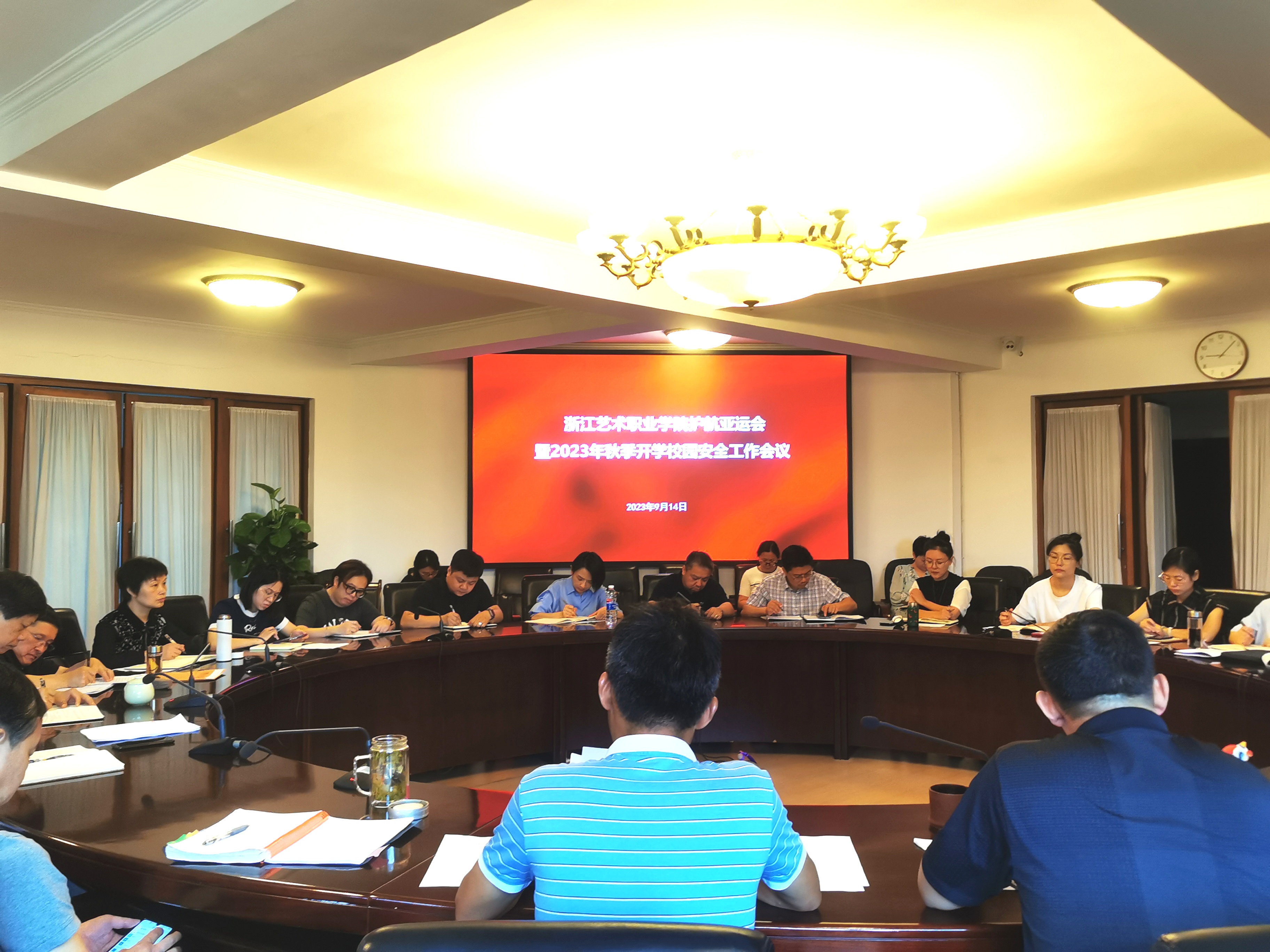 9月14日,我校召开平安护航亚运会暨2023年秋季开学校园安全工作专题会,校党委领导班子成员出席,职能教辅部门负责人参加。会议由校党委委员、副院长沈军甫主持。