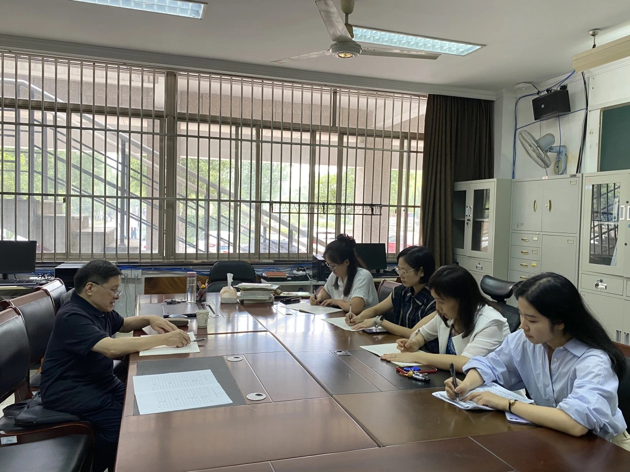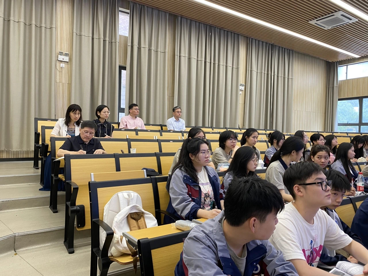 课堂上,校领导们仔细倾听授课内容,细心观察学生上课状态,并认真做了听课记录。从整体情况来看,教师们教学准备充分,学生出勤情况良好,课堂教学井然有序。课后,马向东与任课教师们就教学设计、教学组织与实施、教学资源利用等方面进行了交流探讨。他指出,教师应进一步提高课堂思政教学创新能力,通过融合网络热点案例吸引学生兴趣,充分发挥学生的主观能动性,不断优化教学内容和教学设计,继续推动思政课的亲和力和针对性。