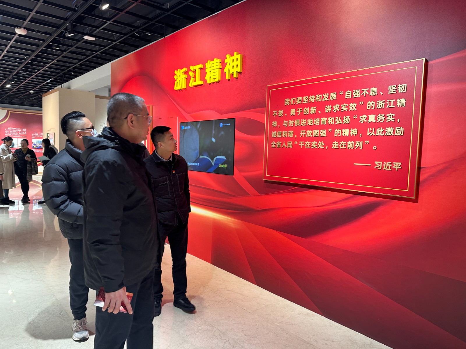 随后,党总支全体党员前往浙江省档案馆,参观“书信家国 尺牍情深——弘扬伟大建党精神长三角档案联展”。展览以伟大建党精神为主题主线,包含“革命理想高于天”“敢教日月换新天”“干出一片新天地”“不忘初心为人民”四个篇章,汇集了长三角地区70余家档案及文博部门珍藏的170余件家书、日记等手迹档案和近200张珍贵历史图片,反映了百年来,在伟大建党精神的引领下,长三角地区一代又一代中国共产党人,为党和人民的事业顽强拼搏、不懈奋斗的精神,彰显了中国共产党人将对家人的情感升华为对人民、国家的大爱担当,把家庭命运融入到国家和民族命运之中的家国情怀。