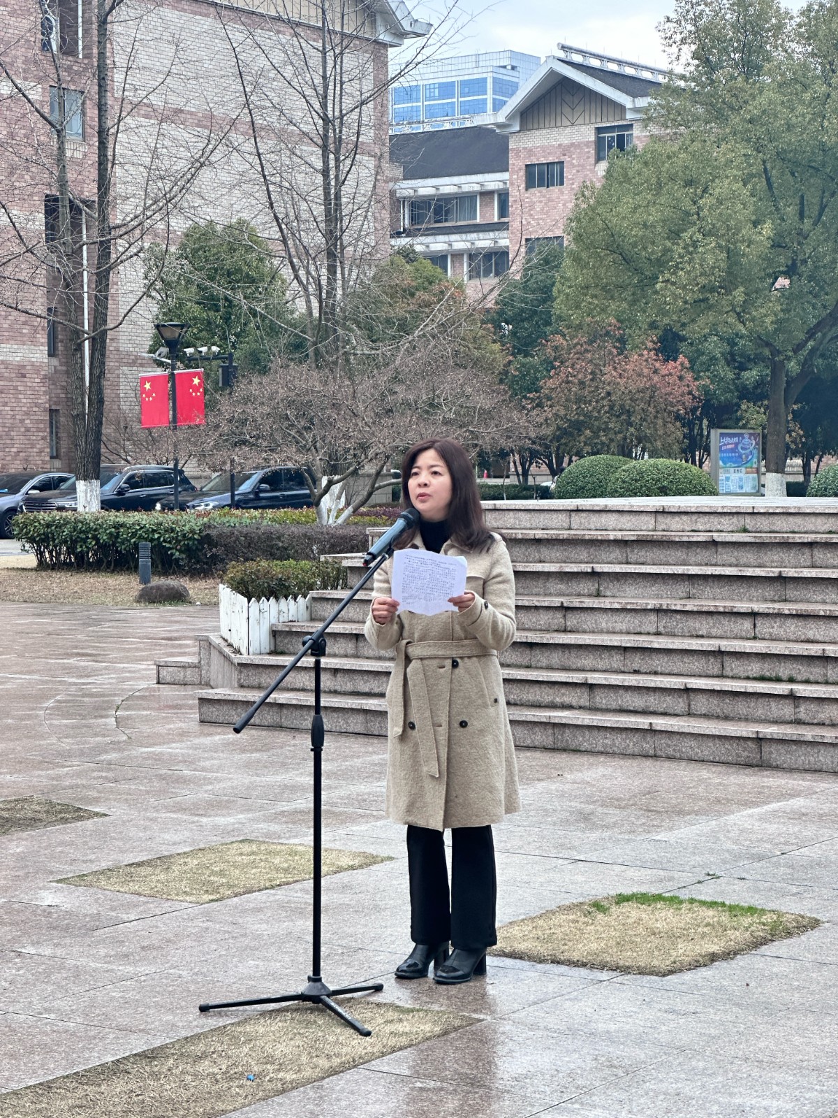 音乐学院惠琳芝作为学生代表发言,她结合寒假热映电影《热辣滚烫》的感人故事,倡导大家在新的学期中用炽热的心情迎接挑战,用滚烫的热情追寻梦想,练就结实的翅膀,搏击长空,尽展风姿。