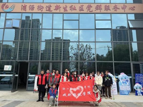 戏剧影视学院“艺光印象”志愿服务队走进浦沿新生社区开展校外志愿服务活动。身穿红马甲的戏影志愿者们分布在社区的各处,用他们的青春热度温暖整个社区。打扫社区卫生,电瓶车停放秩序管理,对居民开展防诈骗宣传等。