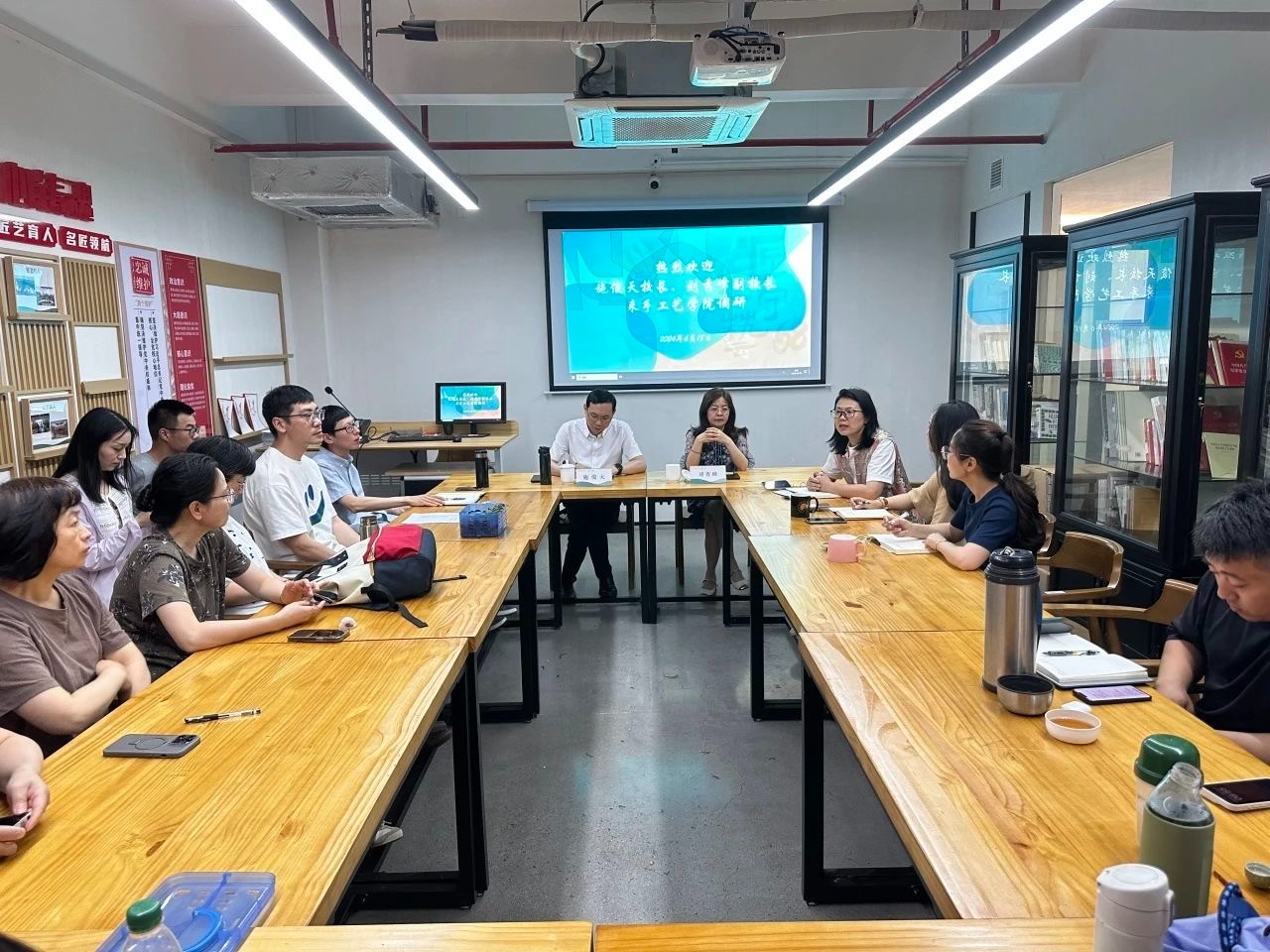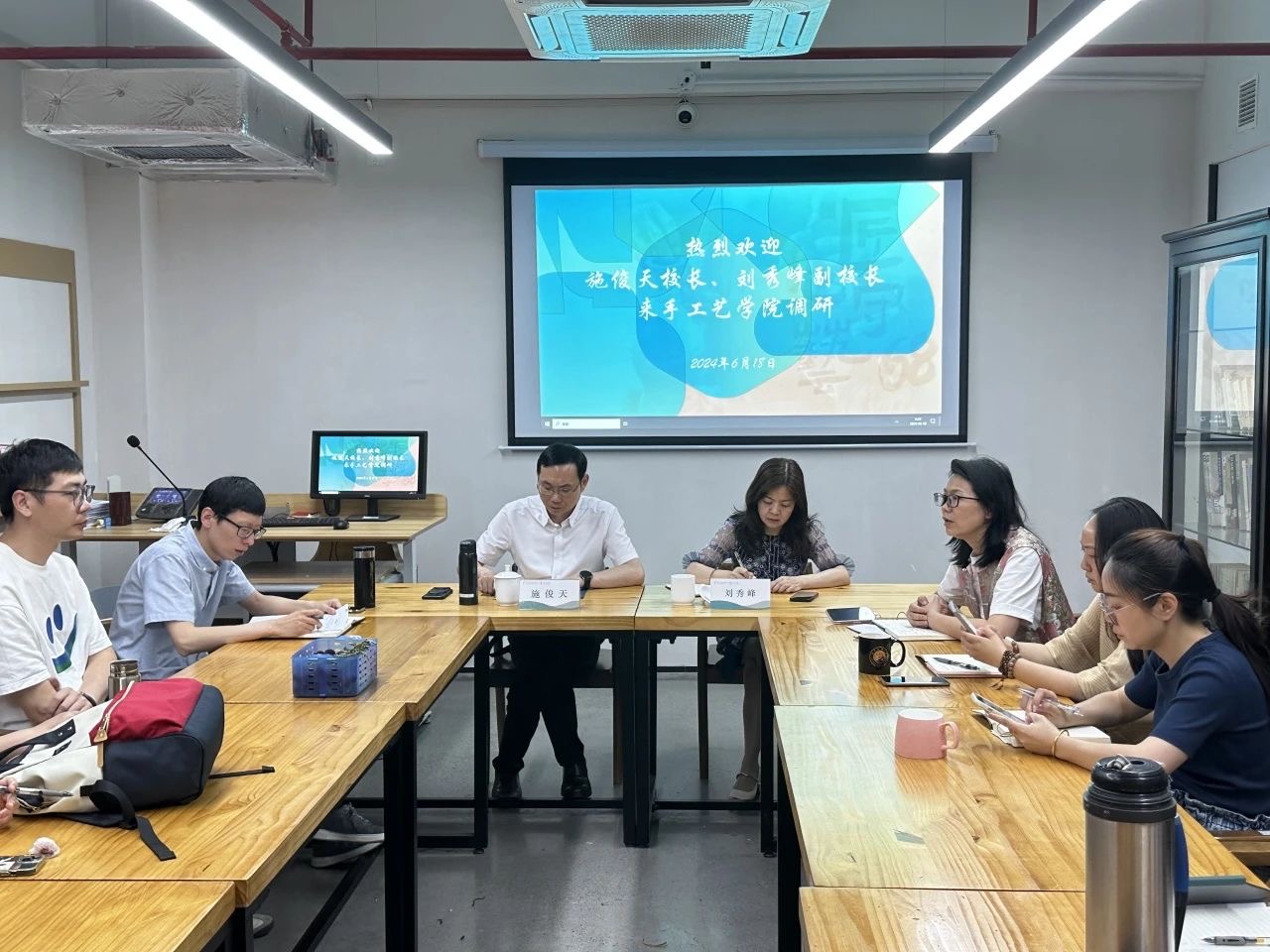 6月18日,校长、党委副书记施俊天,党委委员、副校长刘秀峰到手工艺学院调研,与教师团队面对面交流,共同探讨专业发展方向和人才培养方案,为学院的高质量发展指明方向。手工艺学院全体教师参会。