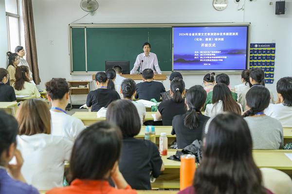徐芳代表学校对省文化广电和旅游厅长期以来对全省民营文艺团体的指导与支持表示感谢,对参加本次学习的全体学员们表示欢迎。他谈到,我省民营文艺表演团体是打造浙江文化品牌的文艺轻骑兵,传播了民间文化艺术,满足了广大观众的精神追求,丰富了浙江文化市场。他认为,此次培训班是在浙江“人才强省战略”实施二十周年之际,在省文化广电和旅游厅指导下,开办的全省民营文艺表演团体优秀剧团演员(化妆、服装)培训班,意义非凡。