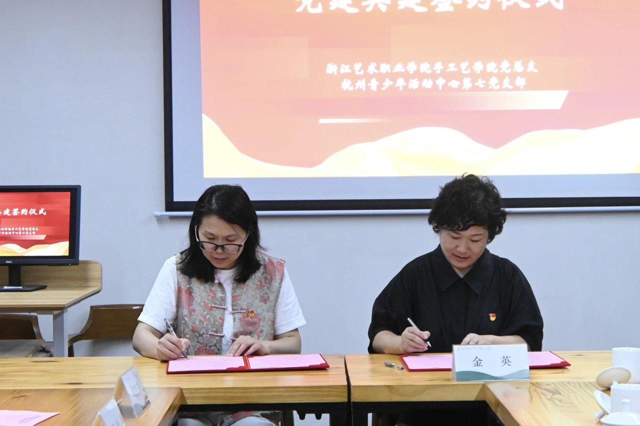 会后,举行党建共建签约仪式。钟黎表示,手工艺学院将与杭州青少年活动中心开展深度合作,深入了解市场需求,共同优化合作项目,进一步促进非遗进青少年活动中心,用传统文化助力青少年发展成长。