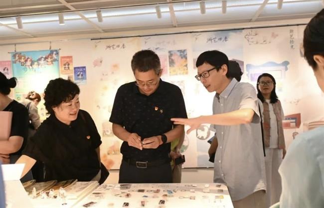 6月20日下午,杭州青少年活动中心党委第七党支部来手工艺学院进行党建共建交流座谈,参观“遗·起潮”手工艺学院“时光造物”非遗创意成果展、“古艺新续”手工艺作品展、龙泉剑村刀剑研究院邀请展。手工艺学院党总支书记钟黎介绍了优秀毕业成果。