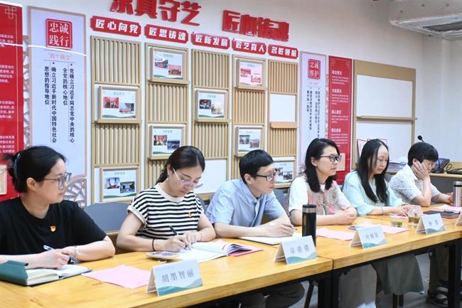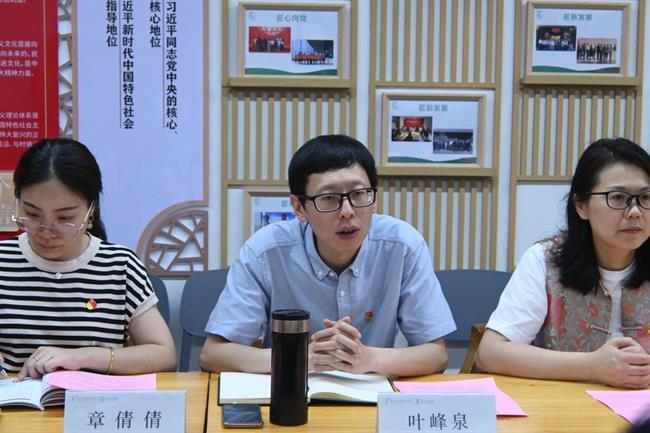 杭州青少年活动中心第七支部和手工艺党总支开展“第一议题”党纪主题党课。杭州青少年活动中心第七支部书记、中心幼教部部长金英,组织委员、中心研发处副处长周华平,纪检委员、中心教管处处长助理顾哓倩,第1党小组组长、中心教管处处长叶盛与我院党总支书记钟黎,党总支委员、教工党支部书记、学院副院长叶峰泉,党总支副书记陈琳,党总支纪检委员、学院办公室主任章倩倩,学生党支部书记、学院辅导员胡墨智丽参会。