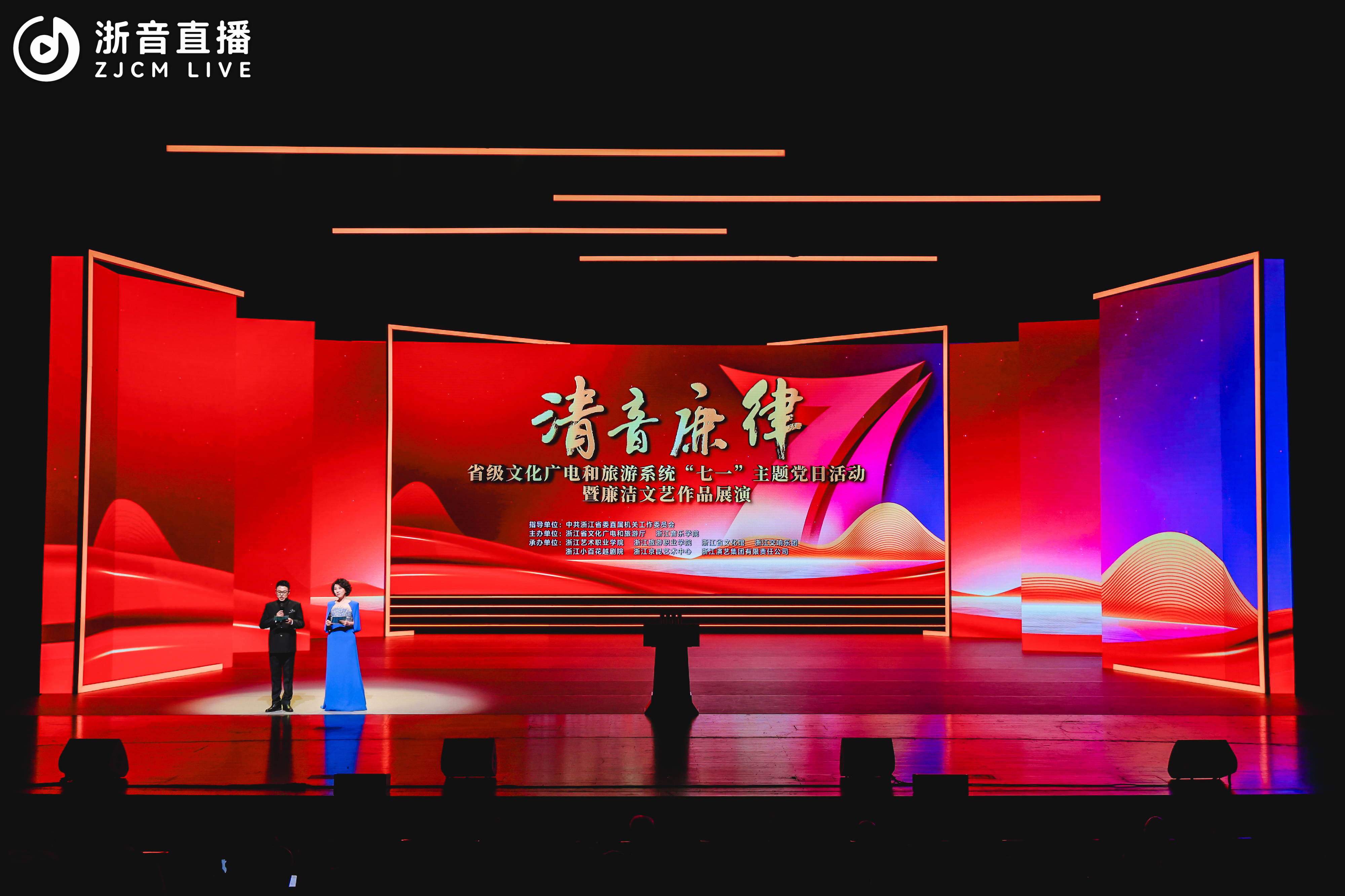 7月3日,浙江省文化广电和旅游厅在浙江音乐学院大剧院举办“清音廉律”——省级文化广电和旅游系统“七一”主题党日活动暨廉洁文艺作品展演。