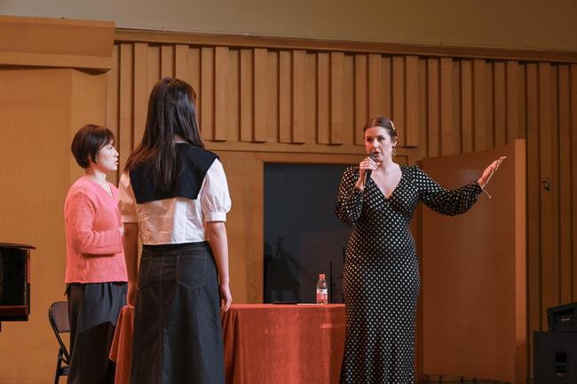 声乐大师课上,Alexandra Dunavant以《声部认知与艺术表达》为主题,通过系统的理论讲解与个性化的实践指导,帮助学员探索声音的无限可能。"每个声音都是独特的艺术品。"她说,"发现自我、表达真我才是声乐艺术的终极追求。"互动环节中,学员们在她专业而富有感染力的指导下,实现了演唱技巧与艺术表现的全面提升。