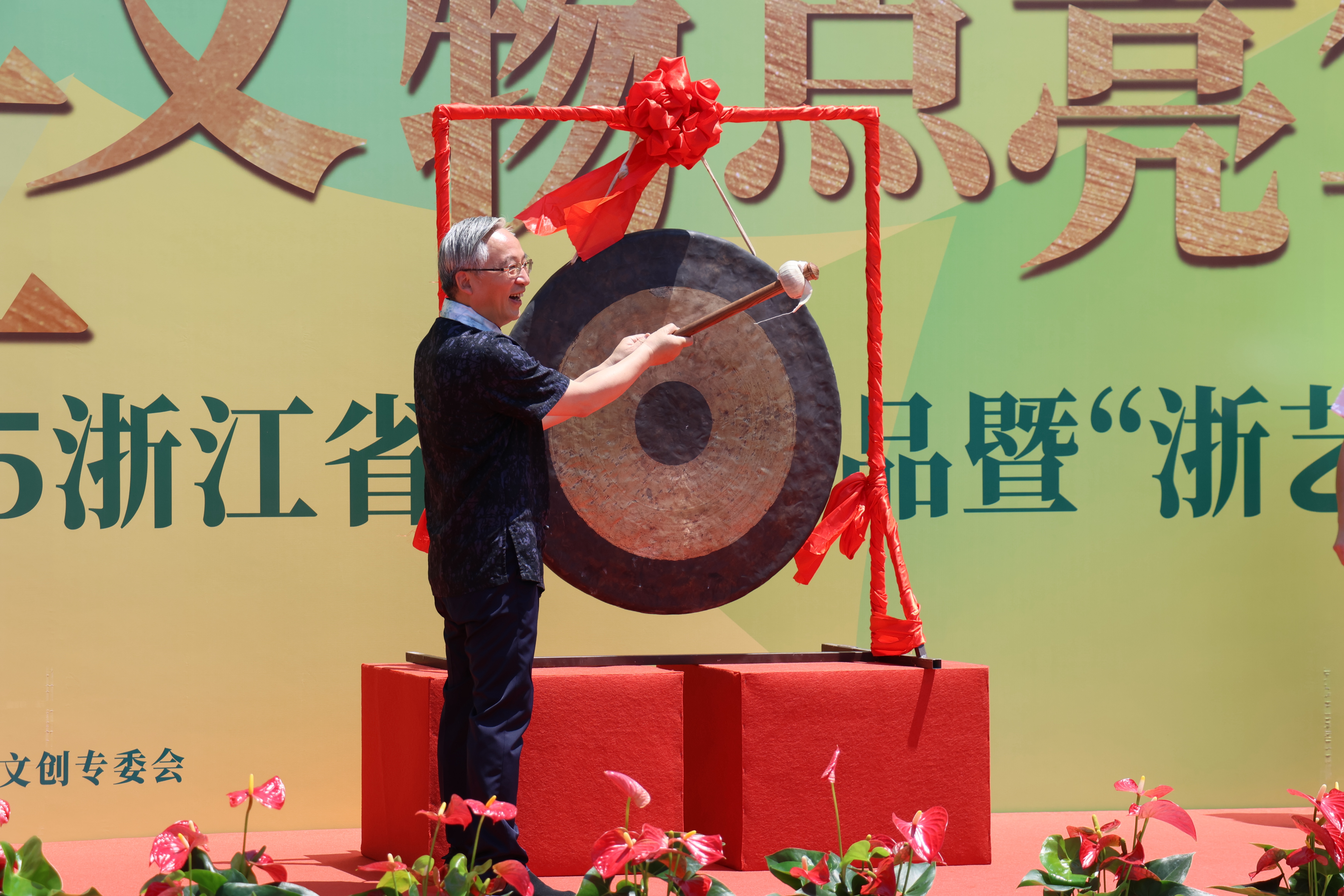 在热烈的掌声中,杨建武敲响开市锣声,“浙艺好市”正式拉开帷幕。